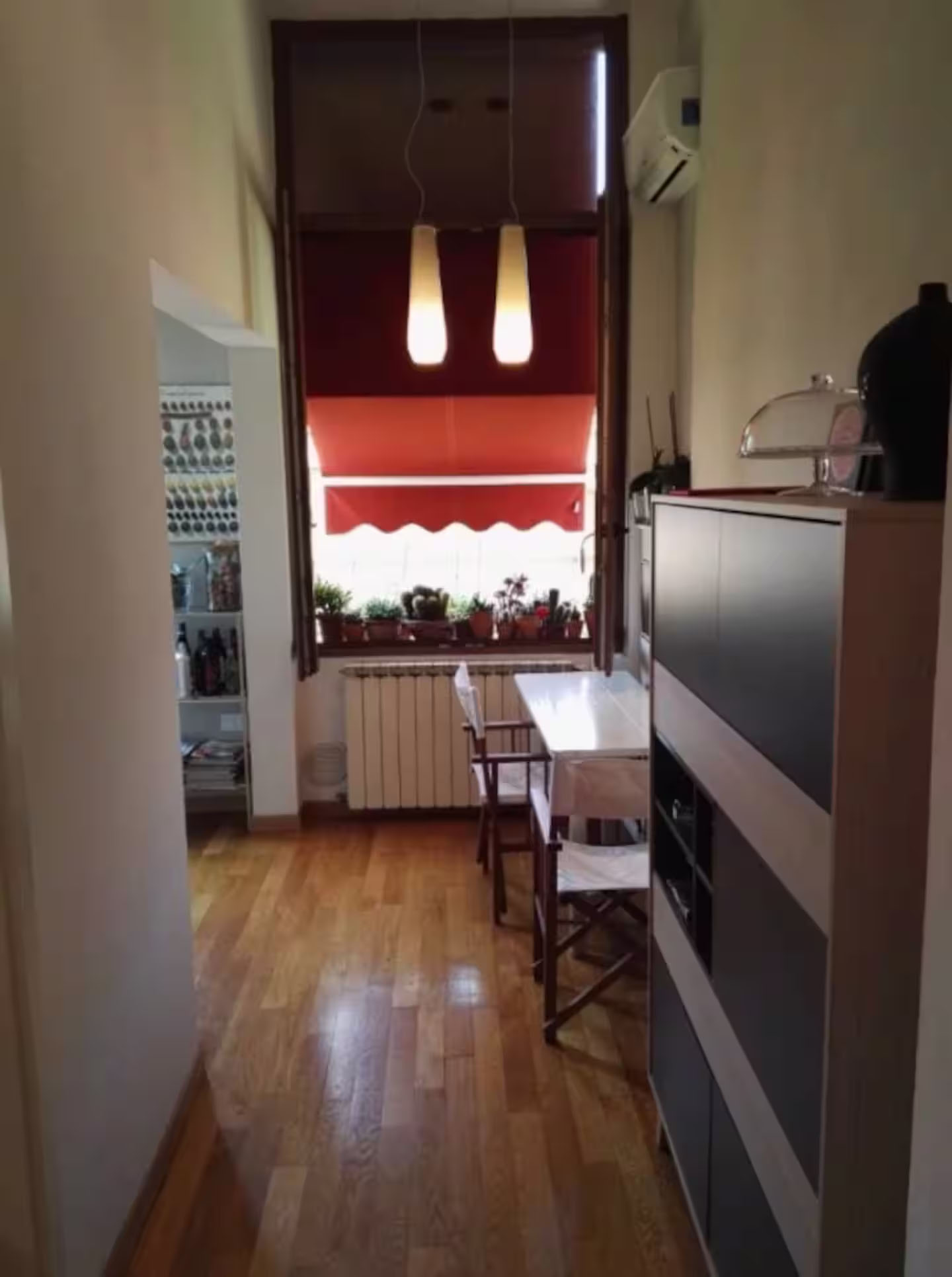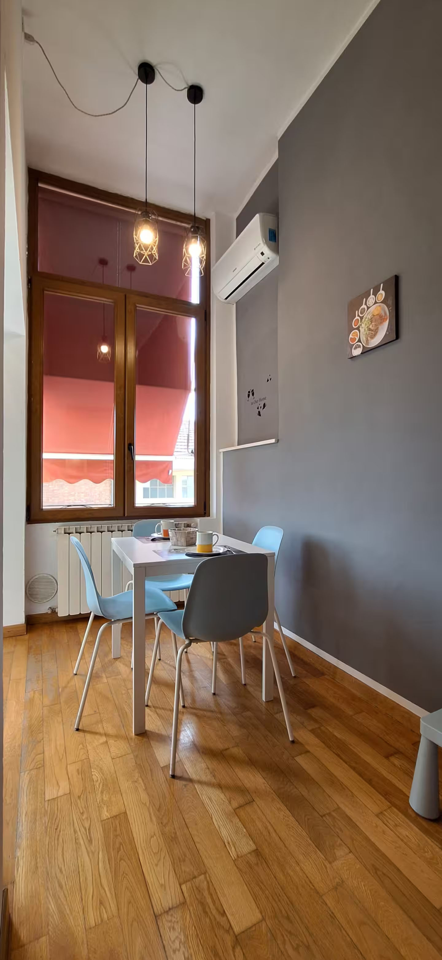 L'aria condizionata è posizionata tra soggiorno e cucina, la casa è raccolta e con le prte aperte si rifresca tutto, ma nella camera da letto non c'è. Abbiamo installato un ventilatore.
